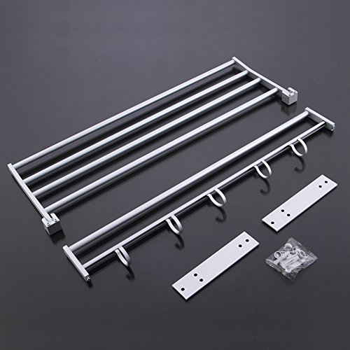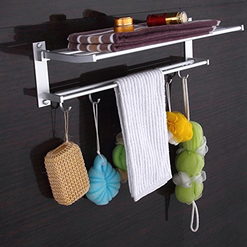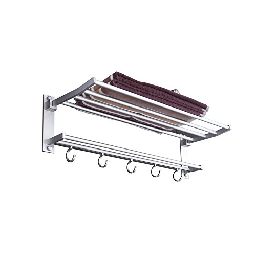 TIANG-Aluminum Single Layer Towel Bathroom Shelves Wih 5 Hooks