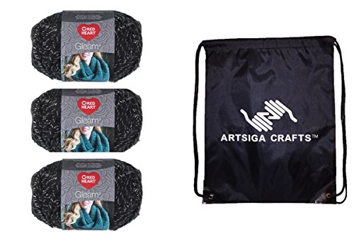 - Bundle Includes 3-Pack of Red Heart Boutique Gleam Yarn Raven E847-3012 with 1 Artsiga Crafts Project Bag