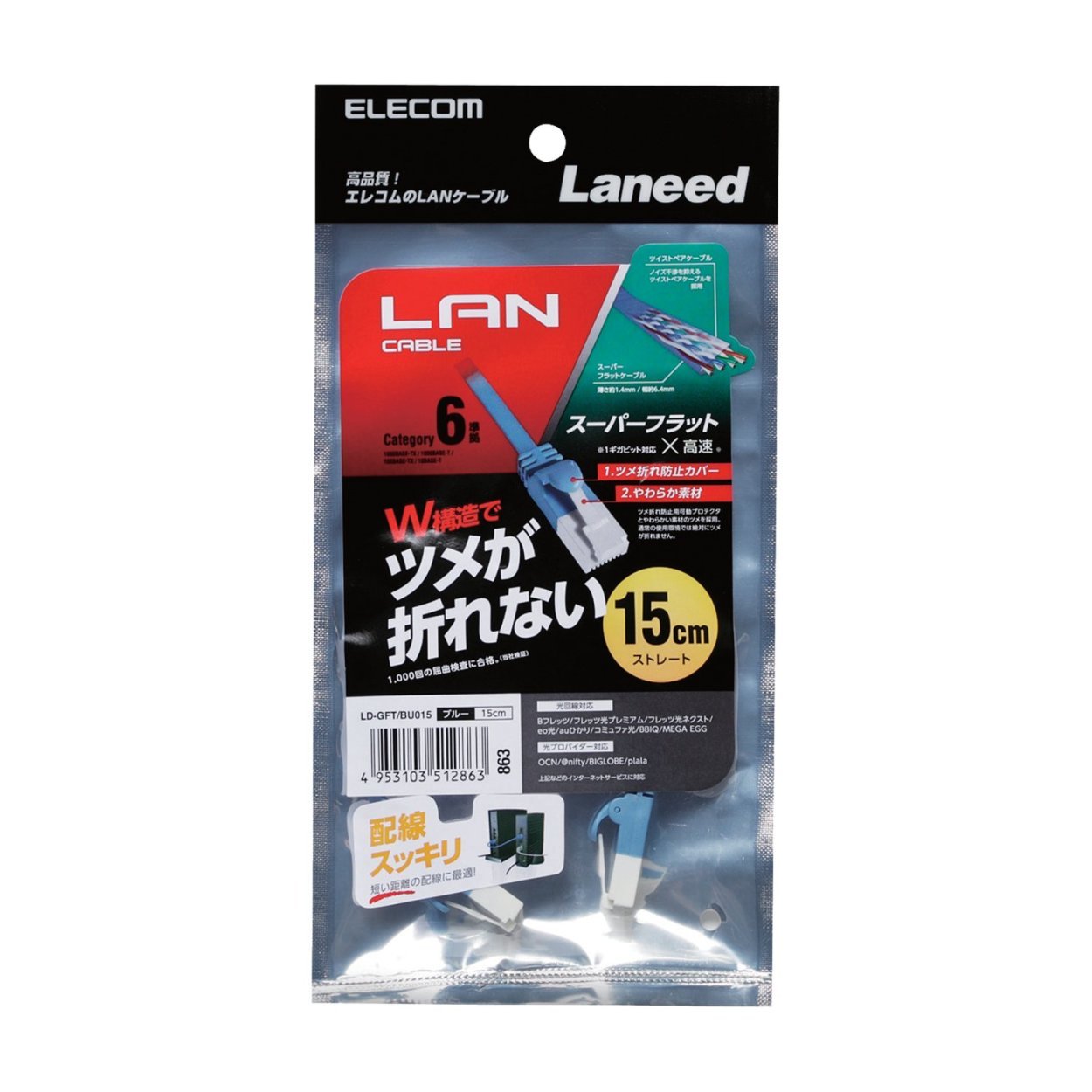 ■ It conforms to Category 6 which realizes a stable network environment even at gigabits such as 1000BASE-TX and 1000BASE-T.
