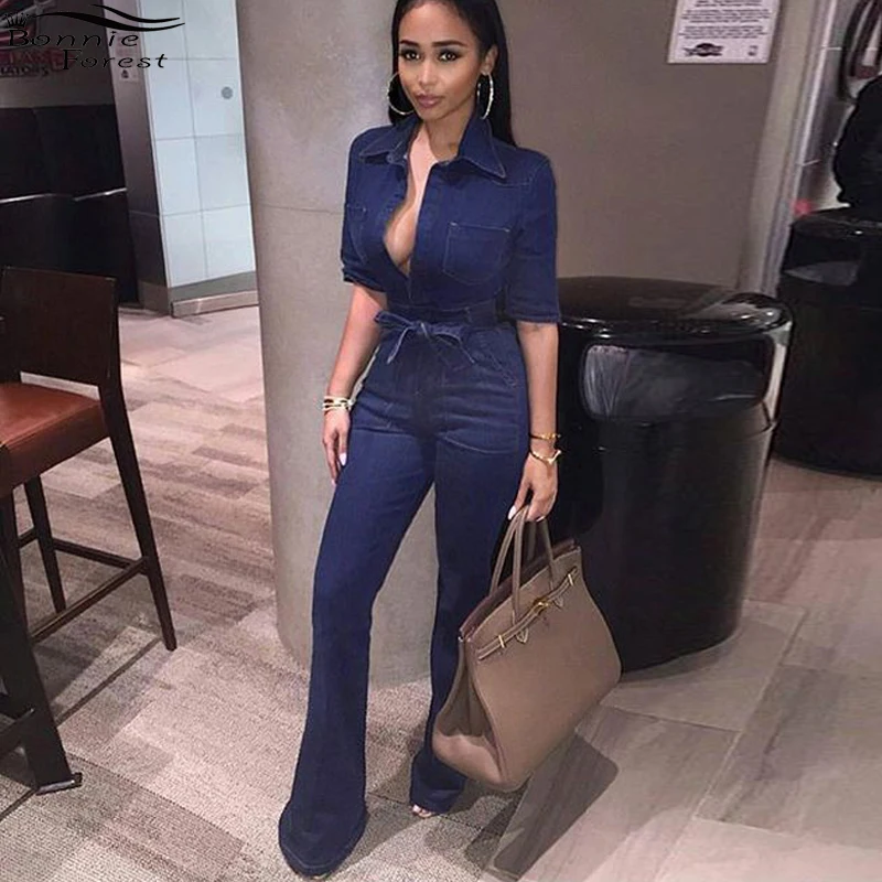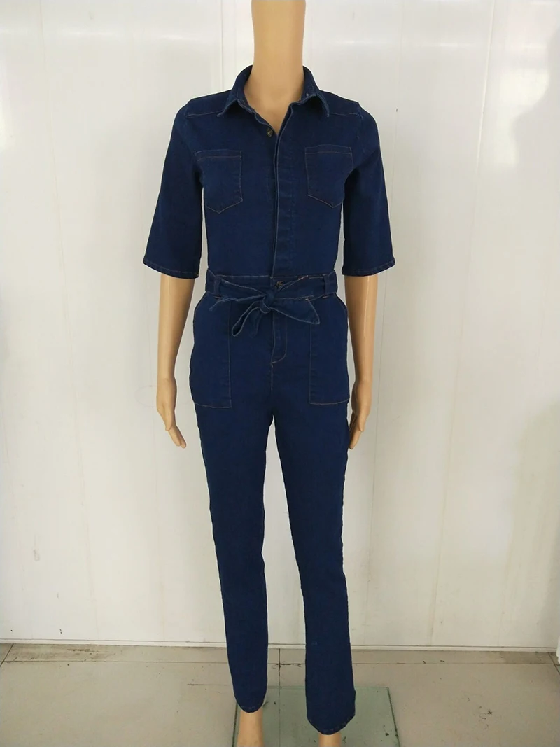 Character:Short Sleeve Denim Jumpsuit Rompers