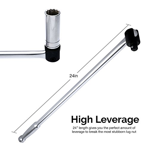 Neiko 00206A 1/2 Inch Drive Premium Breaker Bar, 24" Length | Cr-V Steel