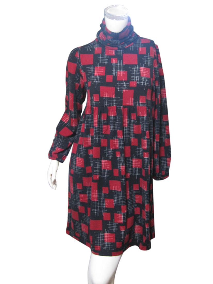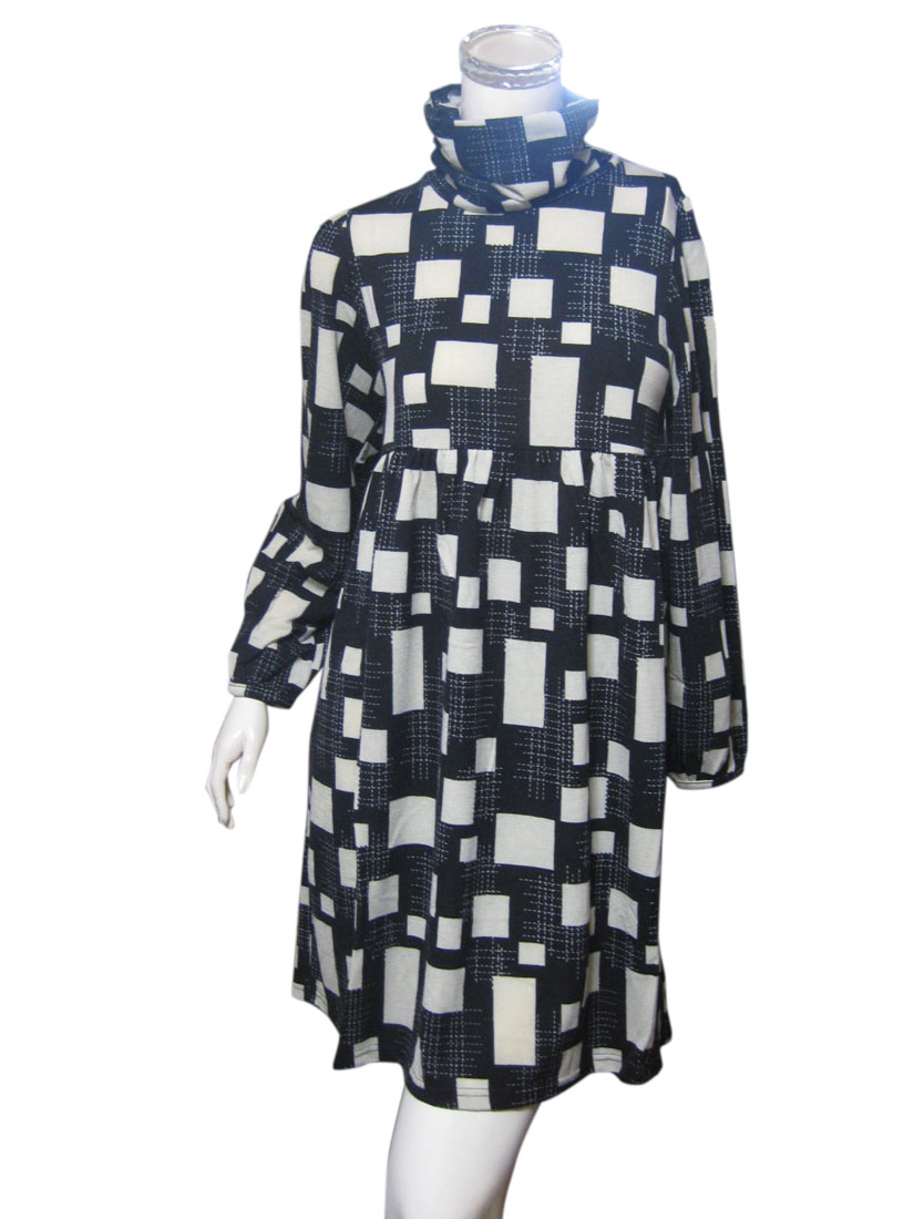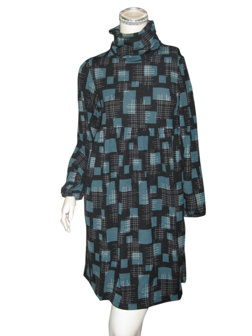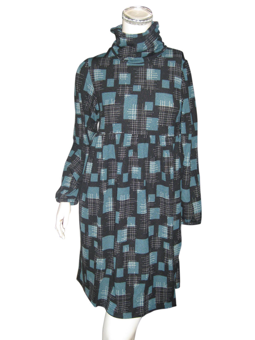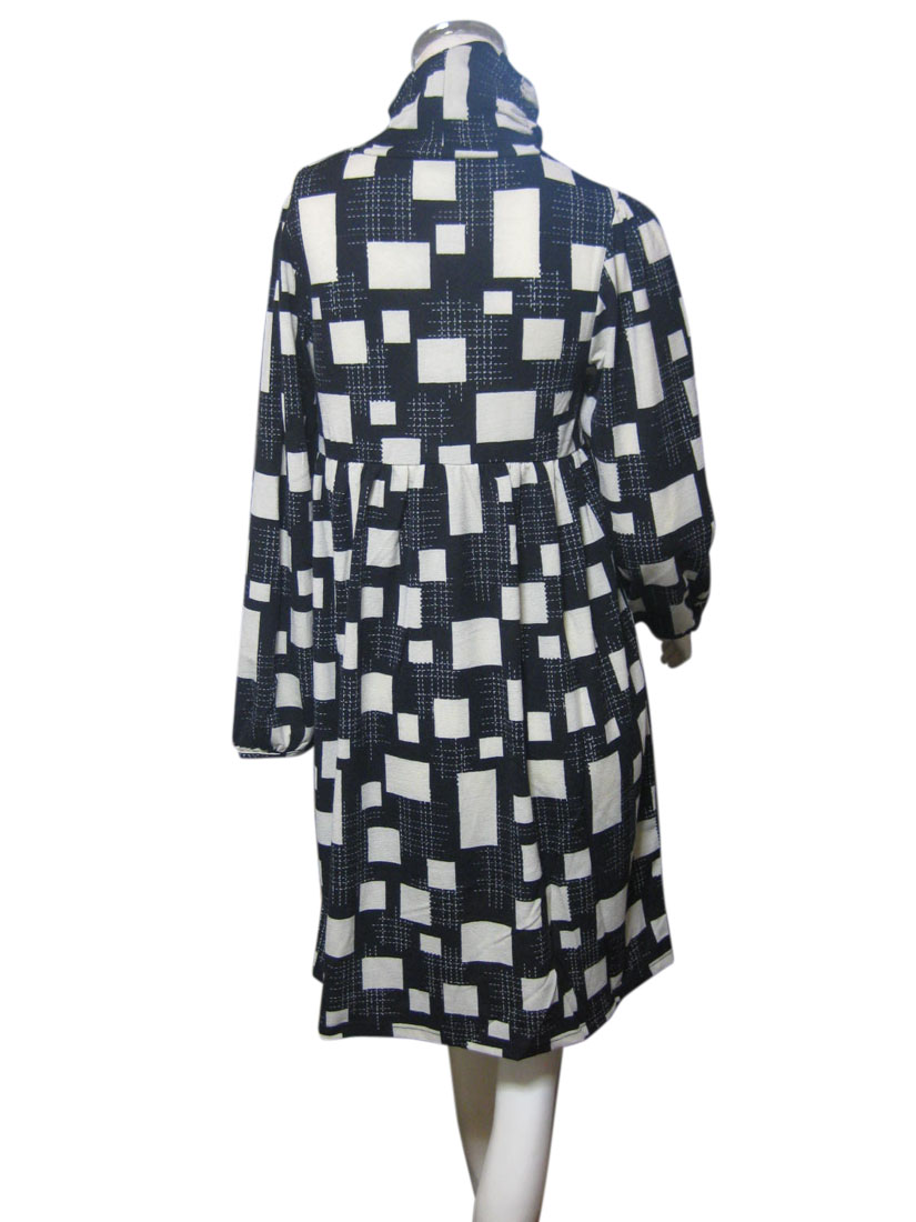 鮮やかなプリントが目を引くハイネックデザインワンピース B柄