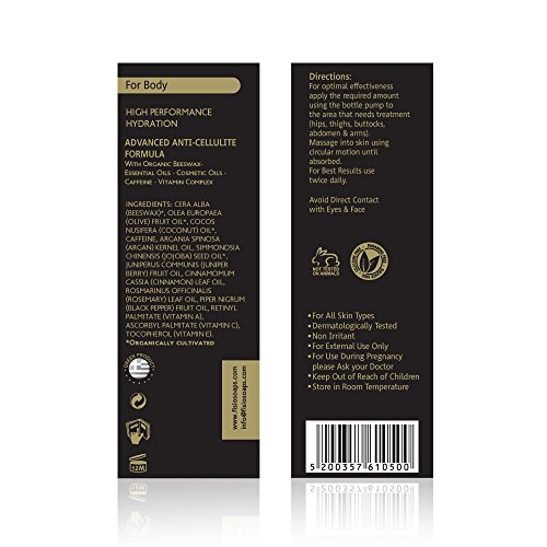 -. Title : Anti Cellulitis massagenöl mit organischem Bienenwachs, organischem Olivenöl, ästhetische Öle, Koffein und Vitaminen -100ml-. Wissenschaftlich bewiesene Zutaten um zu glätten, strafen, festziehen und das Auftauchen von Cellulitis vermeiden. Verstärkt die Kollagen Produktion, die Ihre Haut wiederbelebt. Strafft und stärkt die Haut. Verbessert Hautelastizität und Textur. Reduziert die Orangenhauttextur.