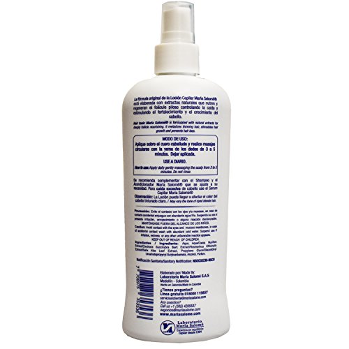 - Maria Salome Capillary Tonic Lotion is elaborate with natural extracts that help to nourish and revitalize the hair, in addition contains glycerin that helps to diminish the redness of the scalp.