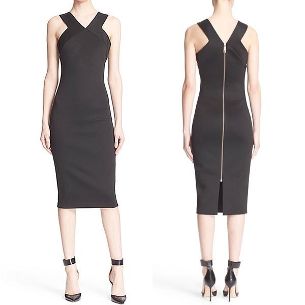 | Vカットデザイン バックジッパー タイトワンピース ノースリーブ ドレス ミディアム丈黒 ブラック 無地 【ワンピース フレアワンピース レディース 女性 ロンデルブラック ワンピース 二次会 膝丈 ひざ丈 one-piece 】 | |
