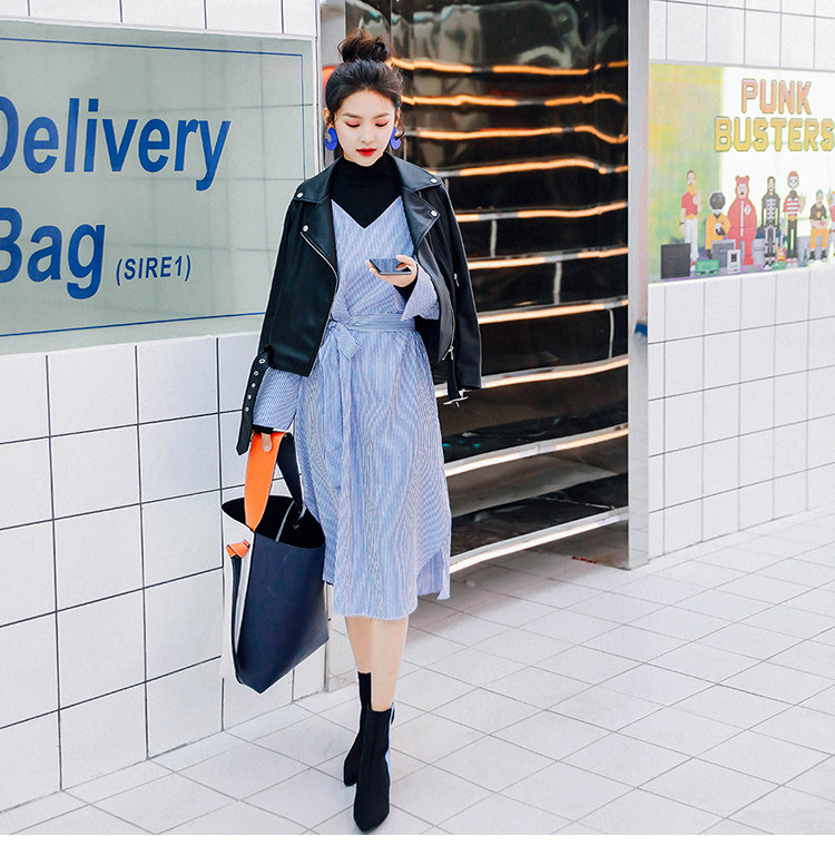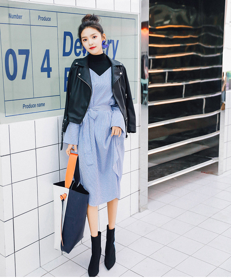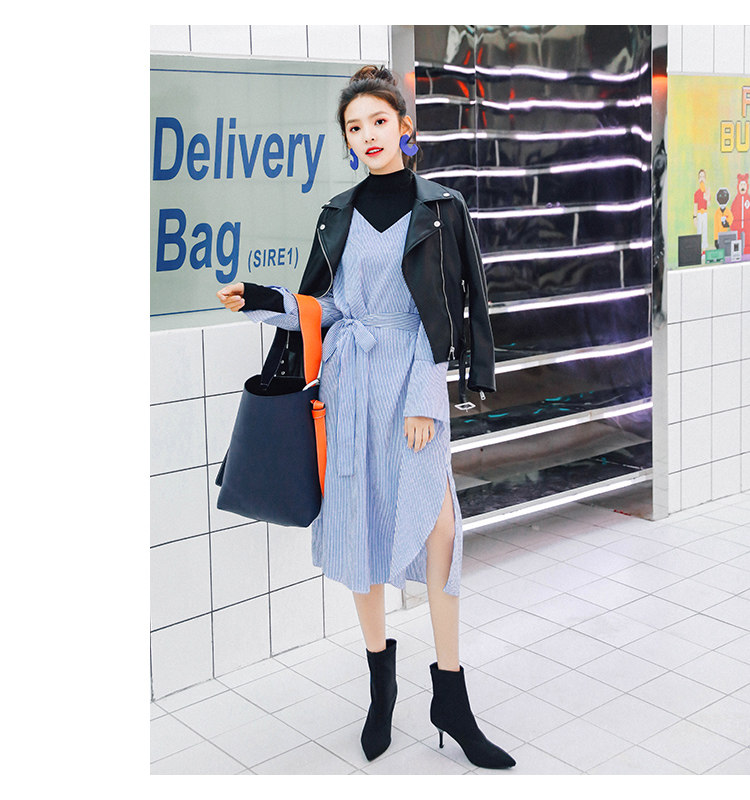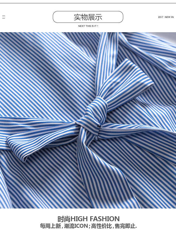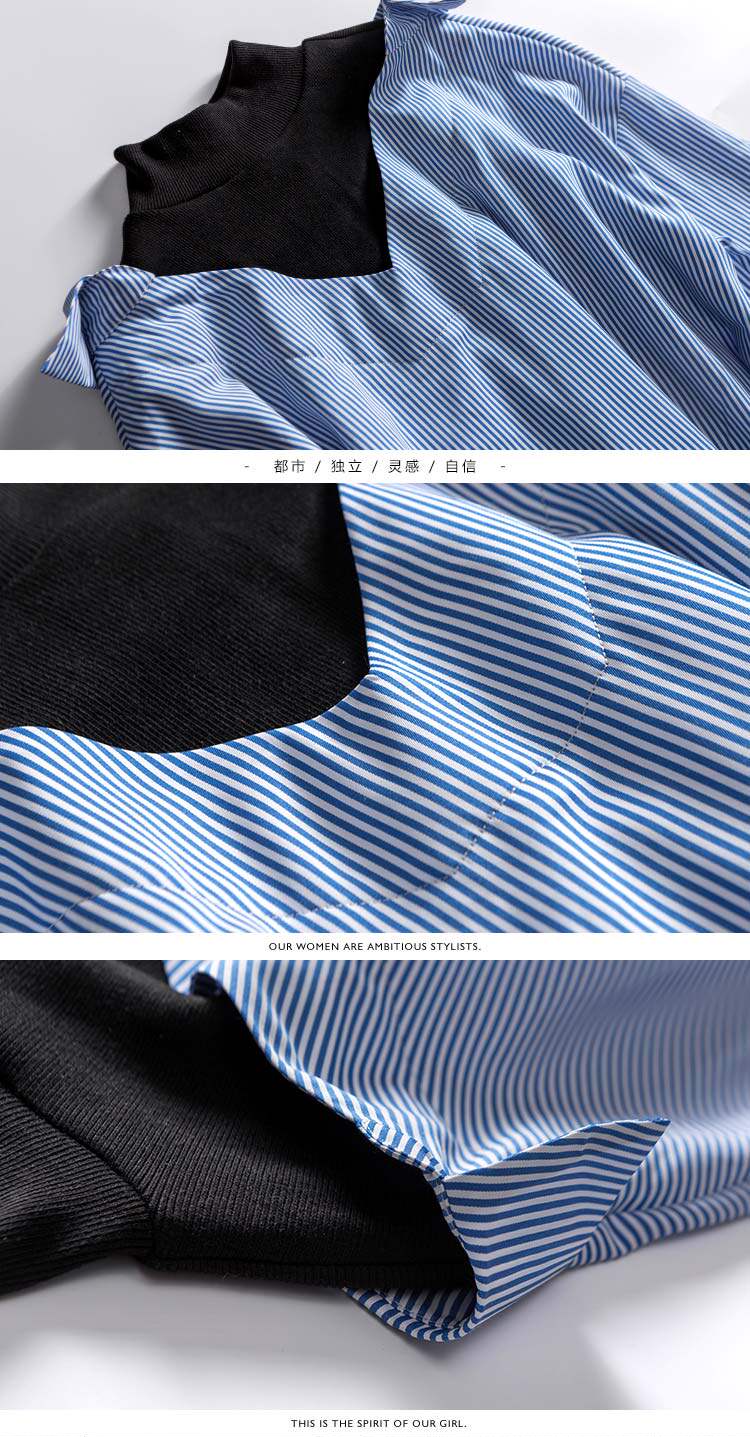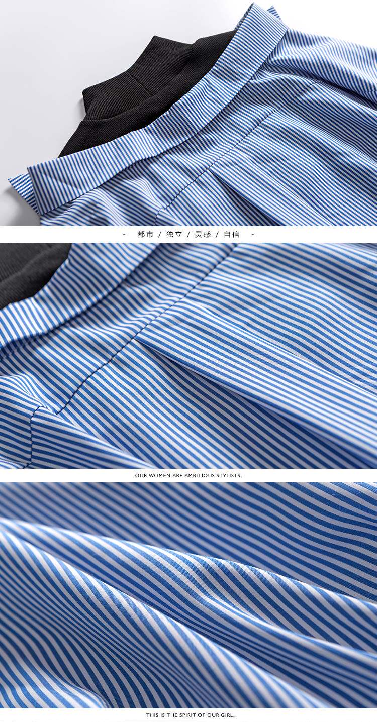 | 面 料:面料1: 聚酯纤维 面料2:98.6%聚酯纤维 1.4%氨纶颜 色:蓝白条纹 |