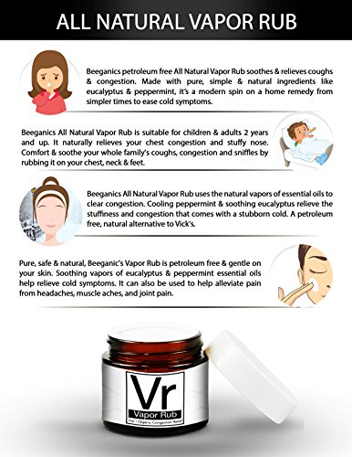 BeeGanics All Natural Chest/Cold/Flu Vapor Rub, Breathe Easy Loosen Chest And Sinus Congestion Eucalyptus, 2 oz.
