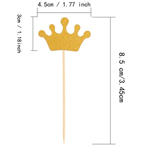 - Cakes toppers size: 8.5 cm/ 3.45 inch in total length; Bamboo toothpick part: about 5.5 cm/ 2.2 inch; Crown part: approx 3 x 4.5 cm/ 1.18 x 1.77 inch (W x L), suitable size design, give your cake a good display