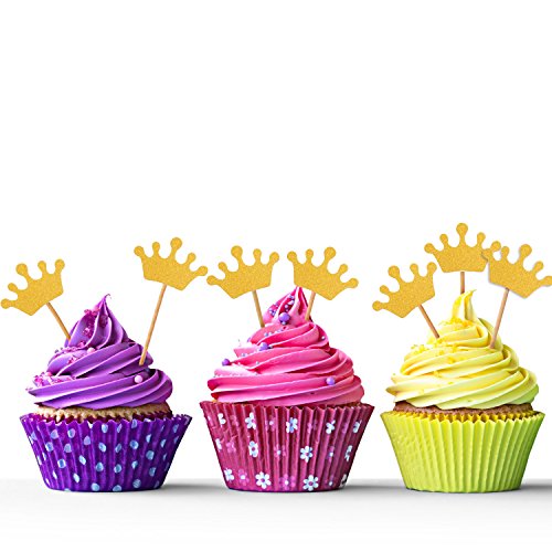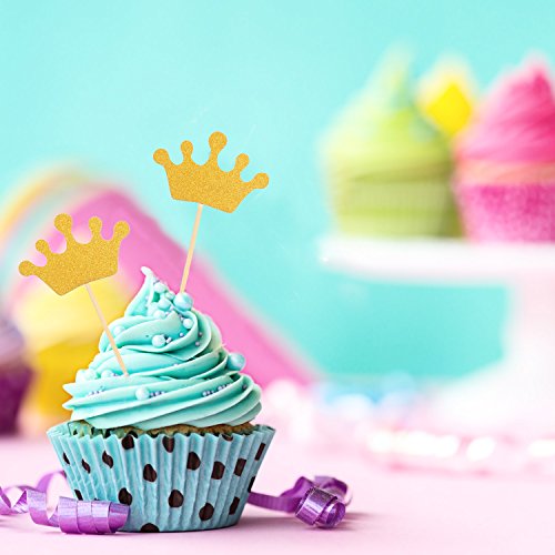 Mtlee 50 Pack Glitter Gold Crown Cake Cupcake Topper Cake Decoration for Wedding Party Decoration