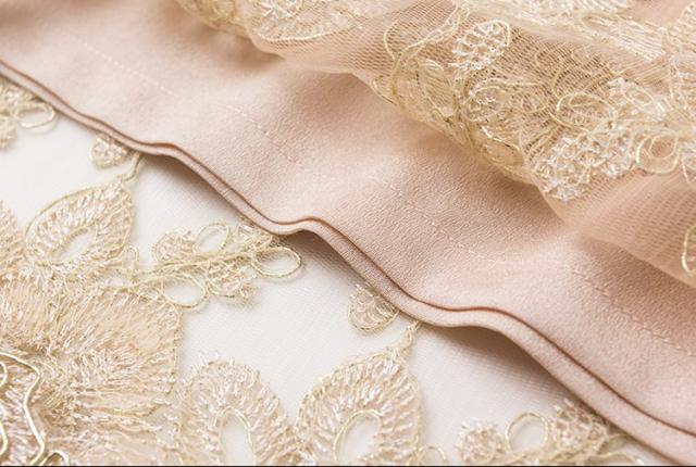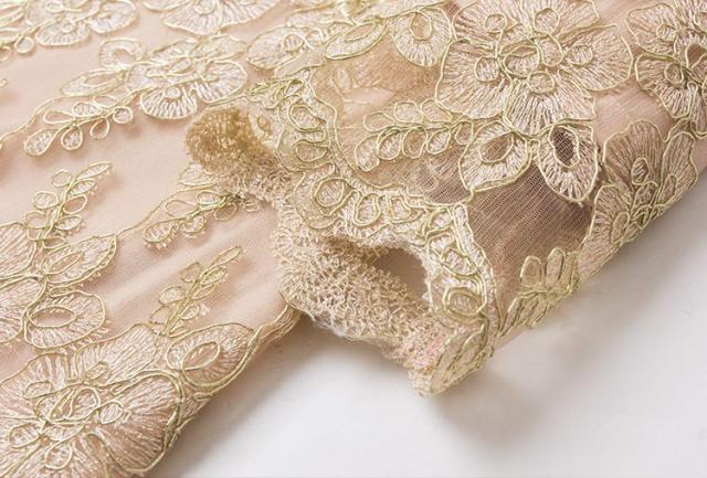 柔らかいレースにゴールド刺繍を施したゴージャスなワンピース。