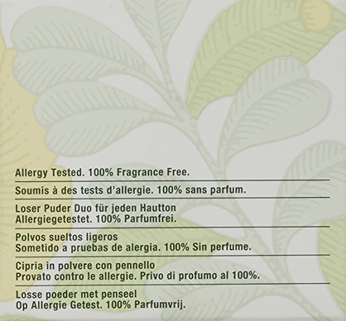 Lightweight powder. Suitable for all types of skin. Makes pores seem to disappear. Hand-rub onto face for most silken and flawless finish. Whisk off excess with swivel-out brush.