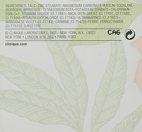 Suitable for all types of skin Makes pores seem to disappear Lightweight powder Brand : Clinique Item model num : 6362-08 MPN(PartNumber) : 13315 EAN : 0013315804027 Product Dimensions(LxWxH) : 6x6x6cm ; 136 g Package Dimensions(LxWxH) : 8x8x7cm ; 136 g