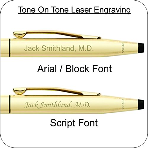 -. Feature : Free standard engraving included, up to 24 character and spaces max. Engraving shows up a tone on tone. / Cross gold pen. 10 karat plated finish. Item cross pen 4502. / Comes in Cross pen case, black writing ink inside. / Custom engraved by DaysP.R.Ing Pens and ships out fast in 1-2 business days. / Makes a great gift pen for award, fathers days, graduation, or birthday.