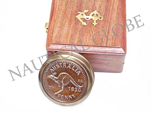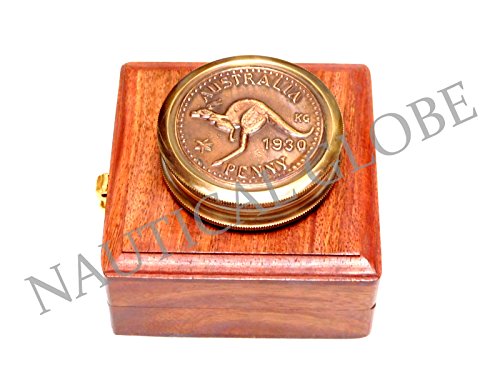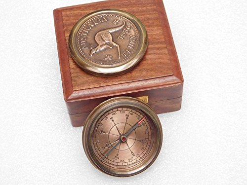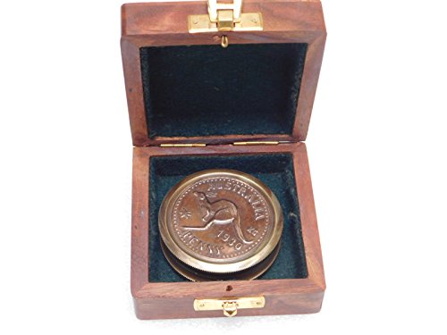 Meridian Nauticals vintage nautical pocket compass fully working australian penny dial compass with wooden box maritime nautical compass