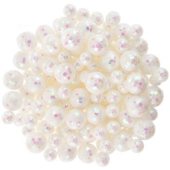 - Product Description: Deck the halls with glitter and shimmer! Winter White Foam Glitter Balls boast an iridescent and white color and loads of sparkle with fine glitter and sequin covering. Use these small orbs to brighten your holiday festivities. Add them to glass bowls or vases or scatter them on tables for a pop of color, dimension, and a magical effect- you can even combine them with other colors for a coordinated look!