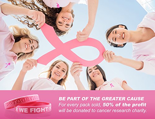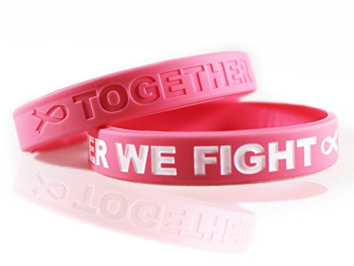 Cancer Awareness Bracelets With Saying TOGETHER WE FIGHT, Gift for Patients, Survivors, Family and Friends, Set of 2 Ribbon Silicone Rubber Wristbands for All