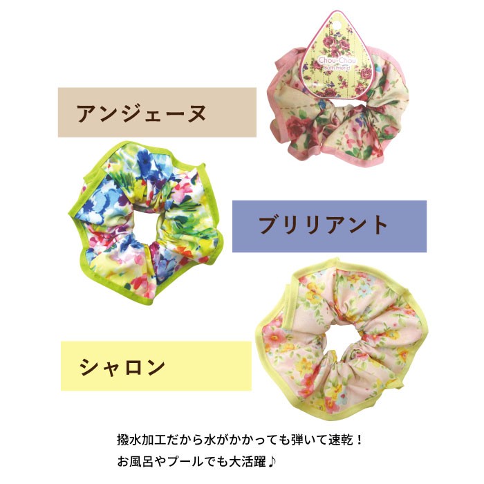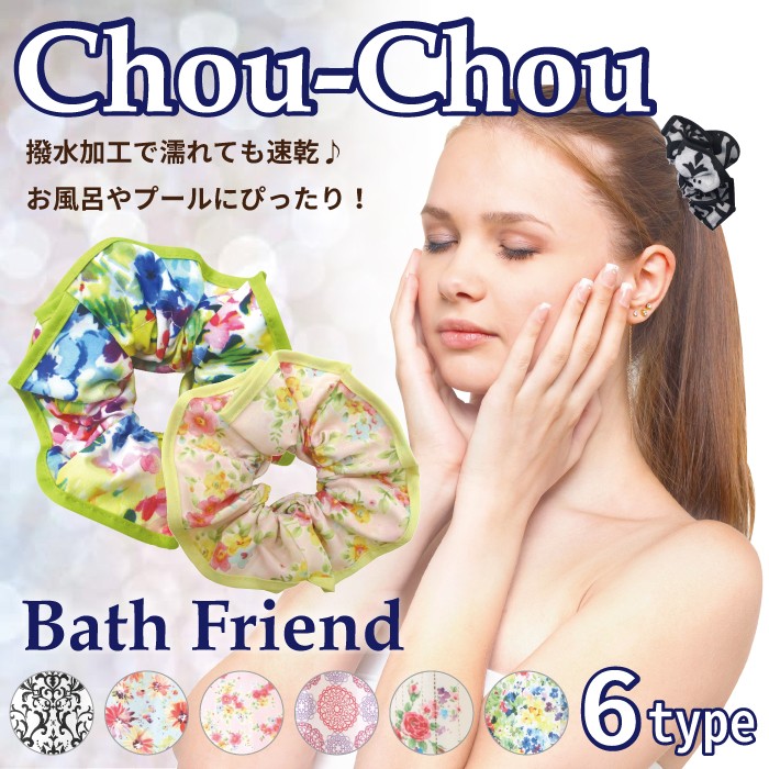 お風呂やスポーツジムで大活躍! バスタイムを充実させる、おしゃれでカワイイ、 便利なバス小物シリーズ。バスフレンド新登場! おしゃれなシュシュでいつものまとめ髪をもっと可愛く♪ 撥水加工だからバシャバシャ水がかかっても水を弾いて乾きも速い! ■材質 ポリエステル100% ■特長/仕様 ・撥水加工