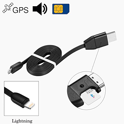 Jiusion GPS Spy Audio Sound Listening USB Cable Charger Surveillance Device Quad-band Real Time Tracker GSM GPRS System Bag Vehicle Tracking Alarm Device (Lightning for iPhone iPod iPad)