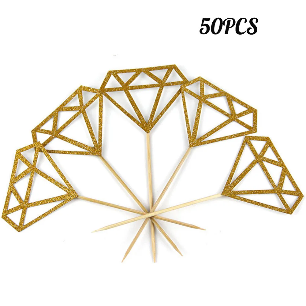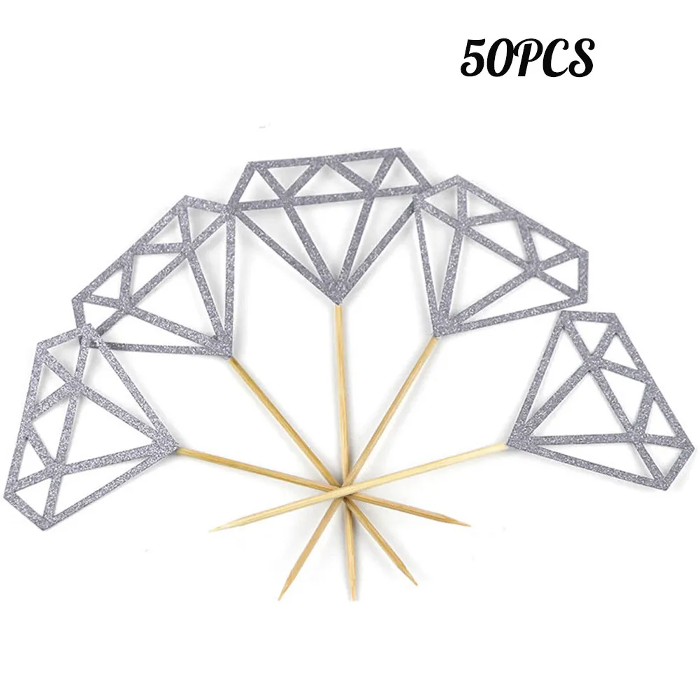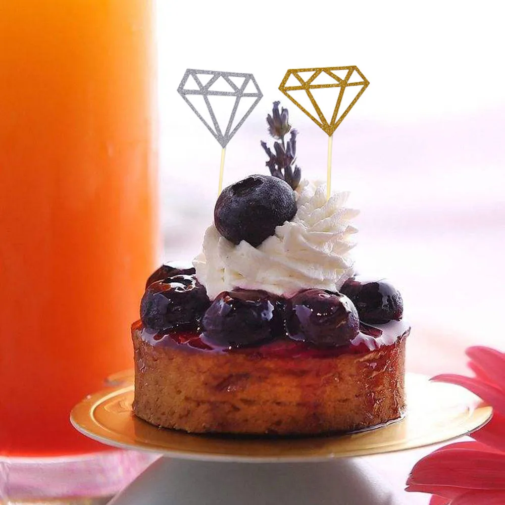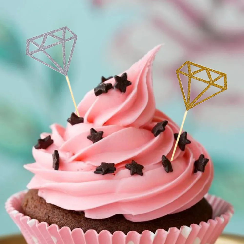 Quantity:comes with 50 pcs Silver gold glitter diamond cupcake toppers, adequate enough for you to decorate your cupcakes at one time and satisfy your quantity requirements