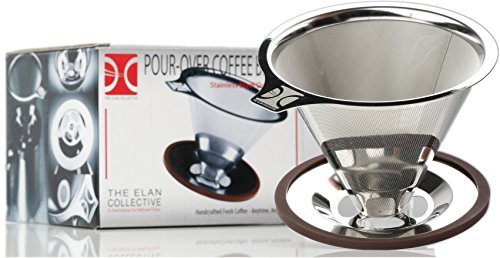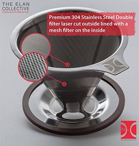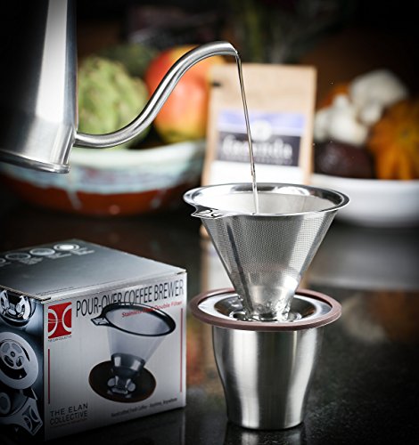 Professional Pour Over Coffee Brewer I Stainless Steel Coffee Dripper I Paperless, Fits Carafes, Cups and Mugs, Reusable Double Filter with Center Drip by The Elan Collective - 1-4 cups