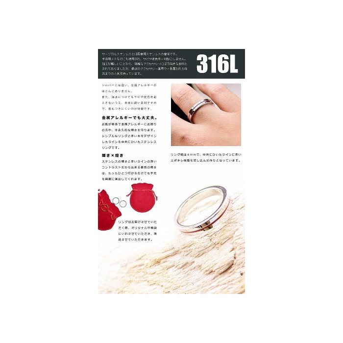 원본상품명:【赤い /レッドライン】 サジカルステンレスリング/ メンズ レディス ☆プレゼントに♪