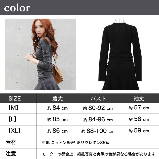 【XL】着丈約86 バスト約88-100 ウェスト約72-80 袖丈約59