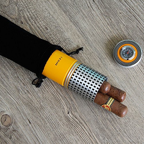 Gadgets Aluminium Alloy Travel Cigar Tube Portable Jar MINI Humidor Humidifier Hygrometer (silver)