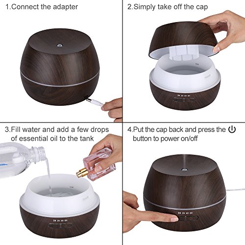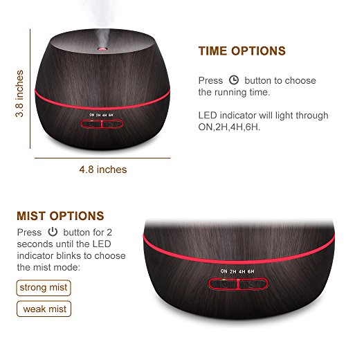 KEDSUM 300ml Aroma Essential Oil Diffuser, Wood Grain Ultrasonic Cool Mist Aromatherapy Humidifier with 7 Color LED Lights,4 Timer...