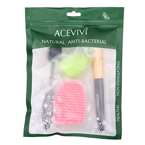 -. Title : ACEVIVI Cosmetic Cream Powder Powder/ Makeup Face Blush Brush + Mini Size Makeup Puff Sponge + Makeup Brush Cleaner