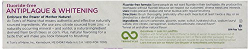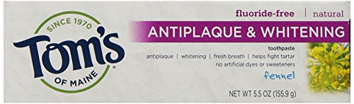 -. Binding : Grocery -. Brand : Tom's of Maine -. EAN : 0077326830758 -. Feature : Contains Xylitol, a natural ingredient derived from birch trees that helps to prevent plaque buildup. / Whitening Helps Fight tartar / Fluoride-Free / No artificial colors, flavors, fragrance, or preservatives / 10% of profits to human and environmental goodness -. IsAdultProduct : 0 -. IsAutographed : 0 -. IsMemorabilia : 0 -. Label : Tom's of Maine -. Manufacturer : Tom's of Maine -. Model : 683075 -. MPN : 683075 -. NumberOfItems : 1 -. PackageQuantity : 1 -. PartNumber : 683075 -. ProductGroup : Grocery -. ProductTypeName : GROCERY -. Publisher : Tom's of Maine -. Size : 5.5 oz -. Studio : Tom's of Maine -. Title : Tom's of Maine Tartar Control Plus Whitening Paste - 5.5 oz - Fennel -. UPC : 077326830758