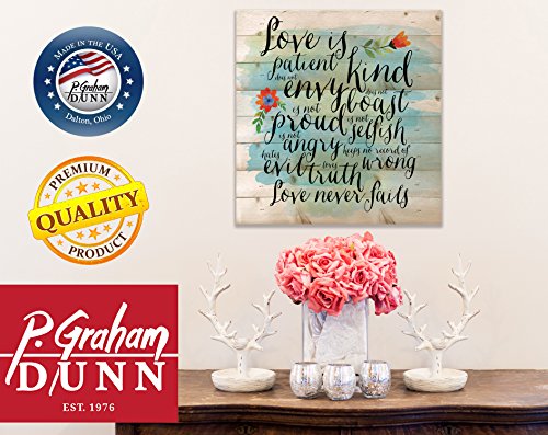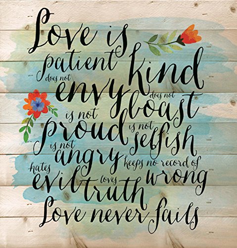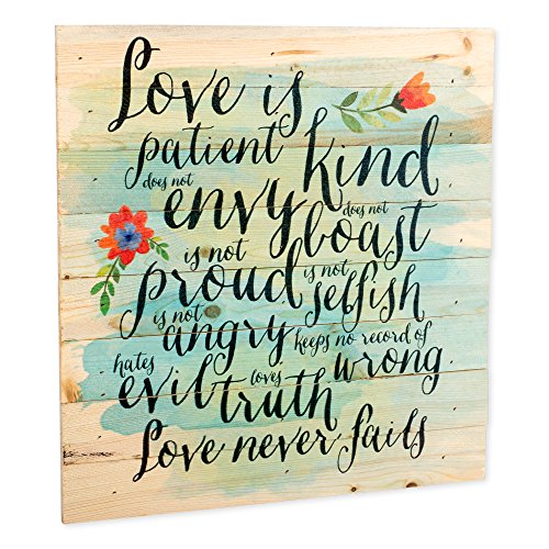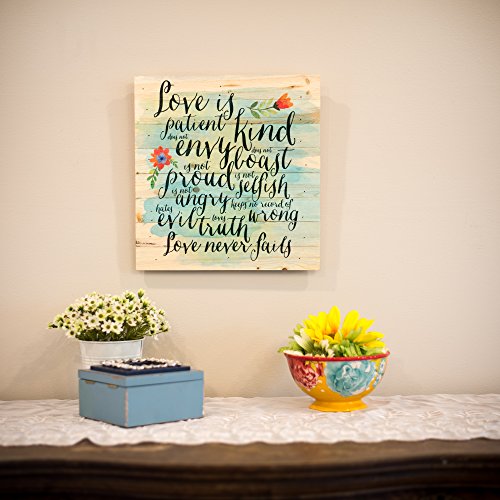 Love is Patient Love is Kind Love Never Fails 12 x 12 inch Pine Wood Plank Wall Sign Plaque