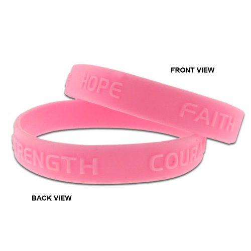 Studio : PinMart Publisher : PinMart Binding : Misc. Product Description Hope-Faith-Strength-Courage!?This Breast Cancer Awareness Rubber Bracelet is made from 100% Pink Silicone Rubber and is?embossed?(for illustration purposes the image?shows both front side and back side; only 1 bracelet will ship per item ordered). The Breast Cancer Awareness Bracelet is used for walks, fundraisers, pink ribbon campaigns, and just about any cause that calls for the symbolic breast cancer pink ribbon. 0