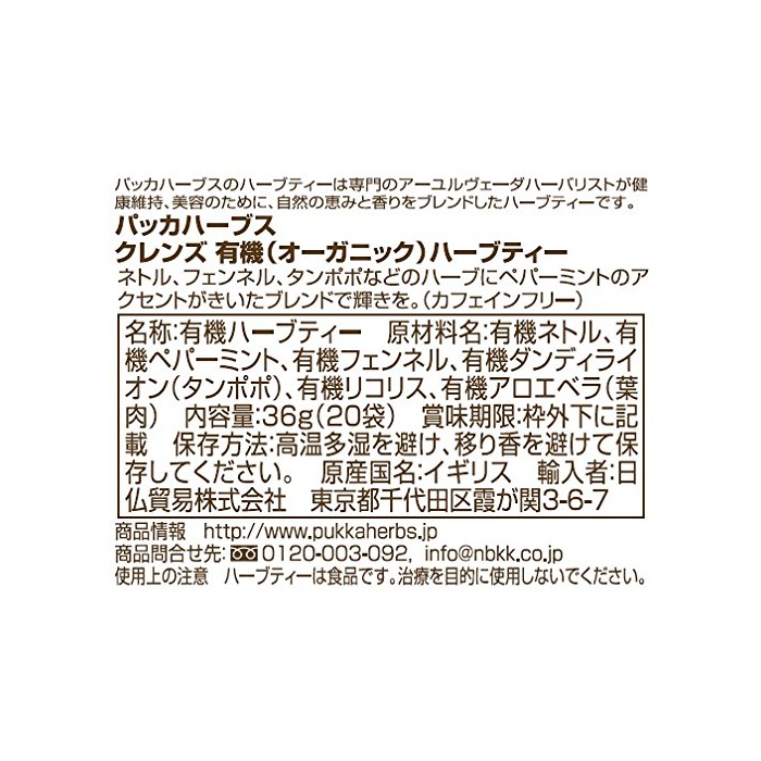 원본상품명: pukka(パッカ) クレンズ有機ハ?ブティ?20TB