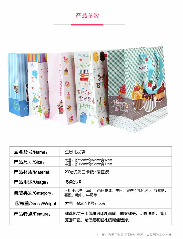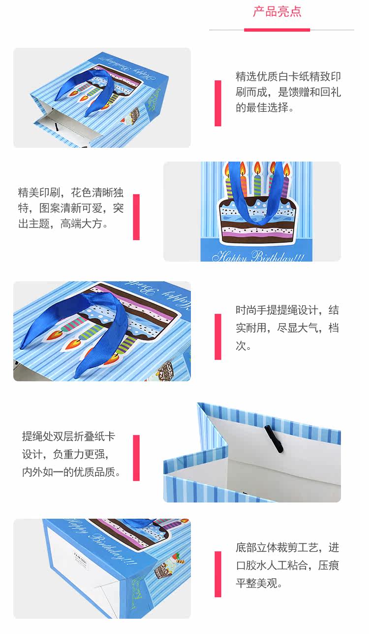 卡通生日礼品袋 纸袋定制 可爱礼物包批发 手提袋回礼袋