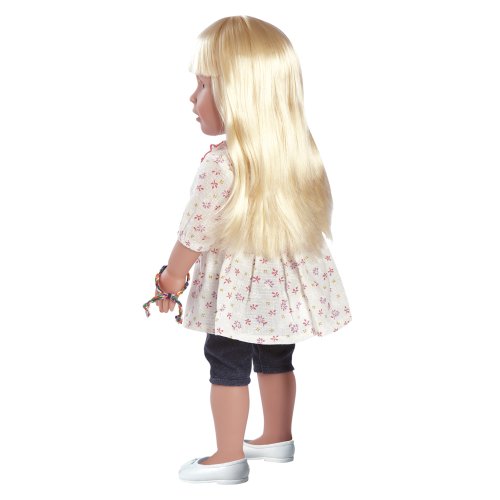 - Feature : 18" Play Doll with durable light skin tone vinyl legs, arms, shoulder plate and head secured on a cuddly soft body / Silky smooth light blonde hair / Blue "Sleepy" eyes that close when you lay her down to rest / Completely posable - articulated at the neck, arms and legs / Comes with ADORA Friendship Bracelet, fits American Girl Clothing, perfect for Ages 6+