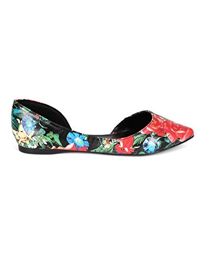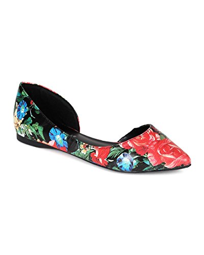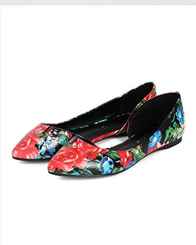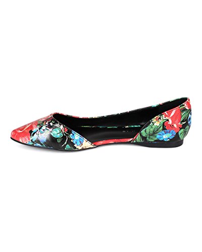 Breckelles CC35 Women Leatherette Multi Color Open Shank Pointy Toe Flat - Red