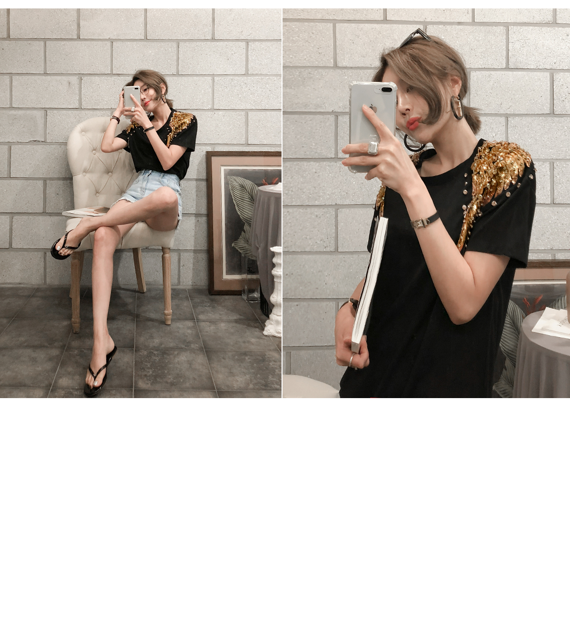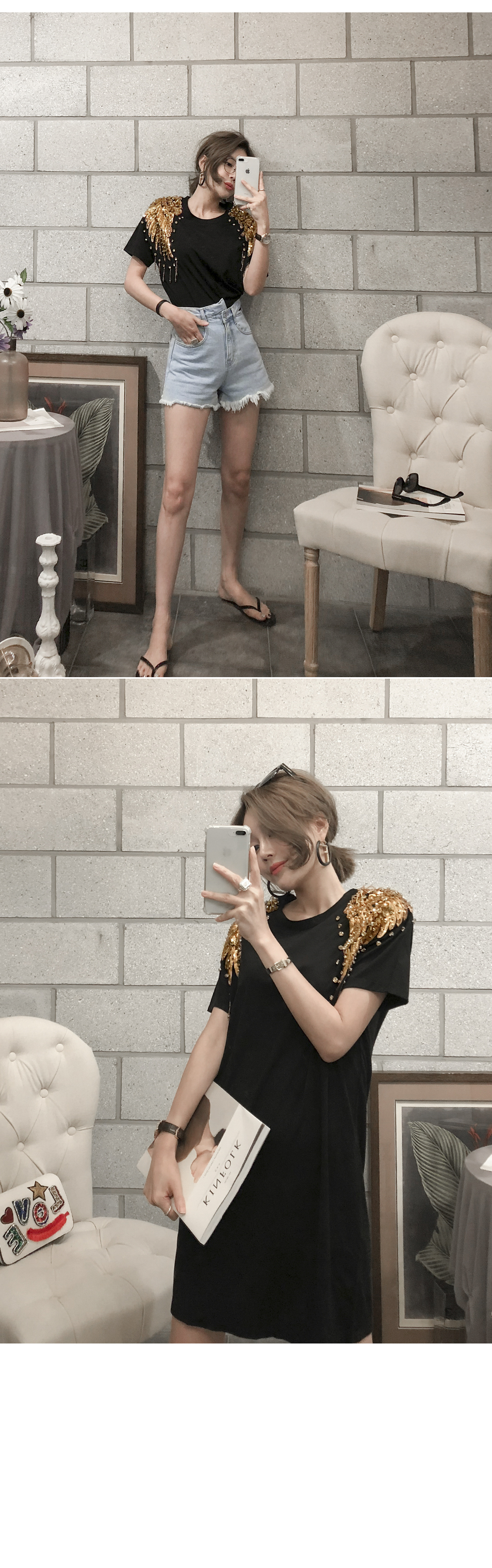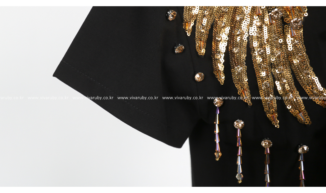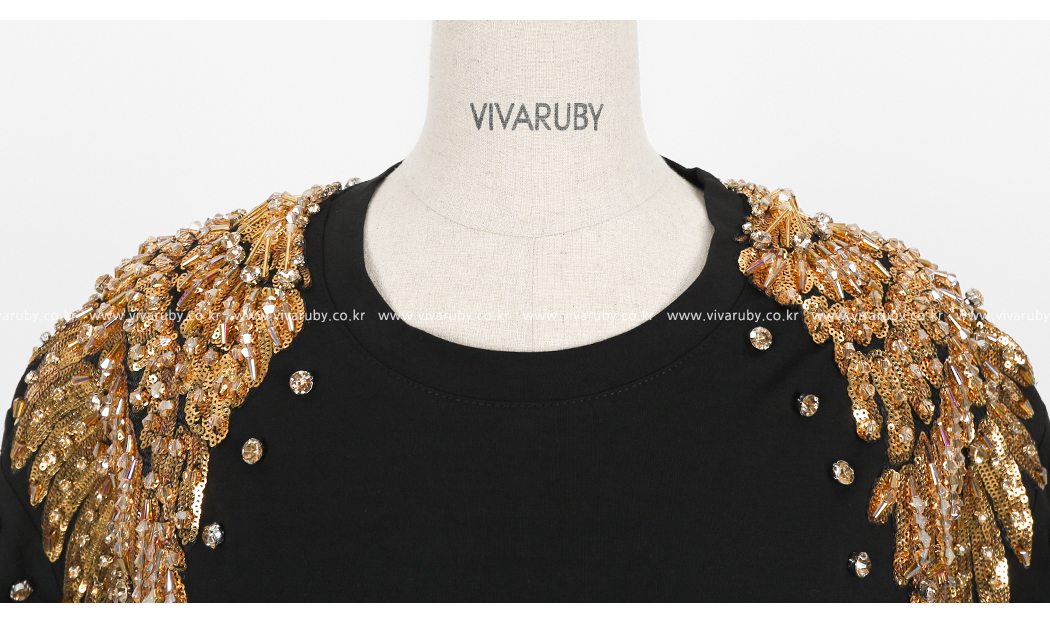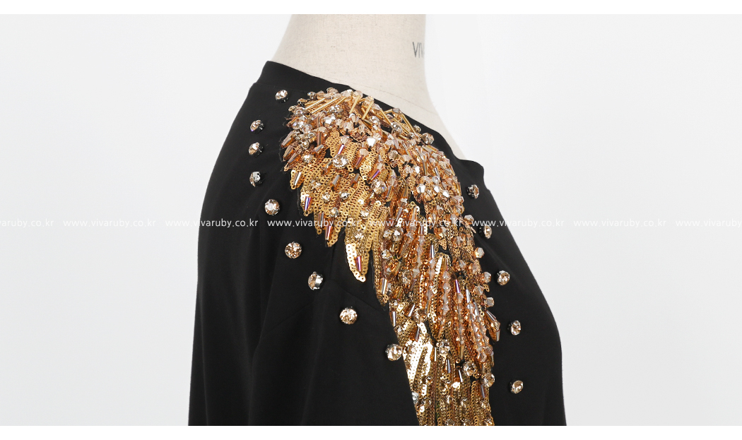숄더 부분의 스팽글 디테일로 고급스러운 포인트를 주었답니다