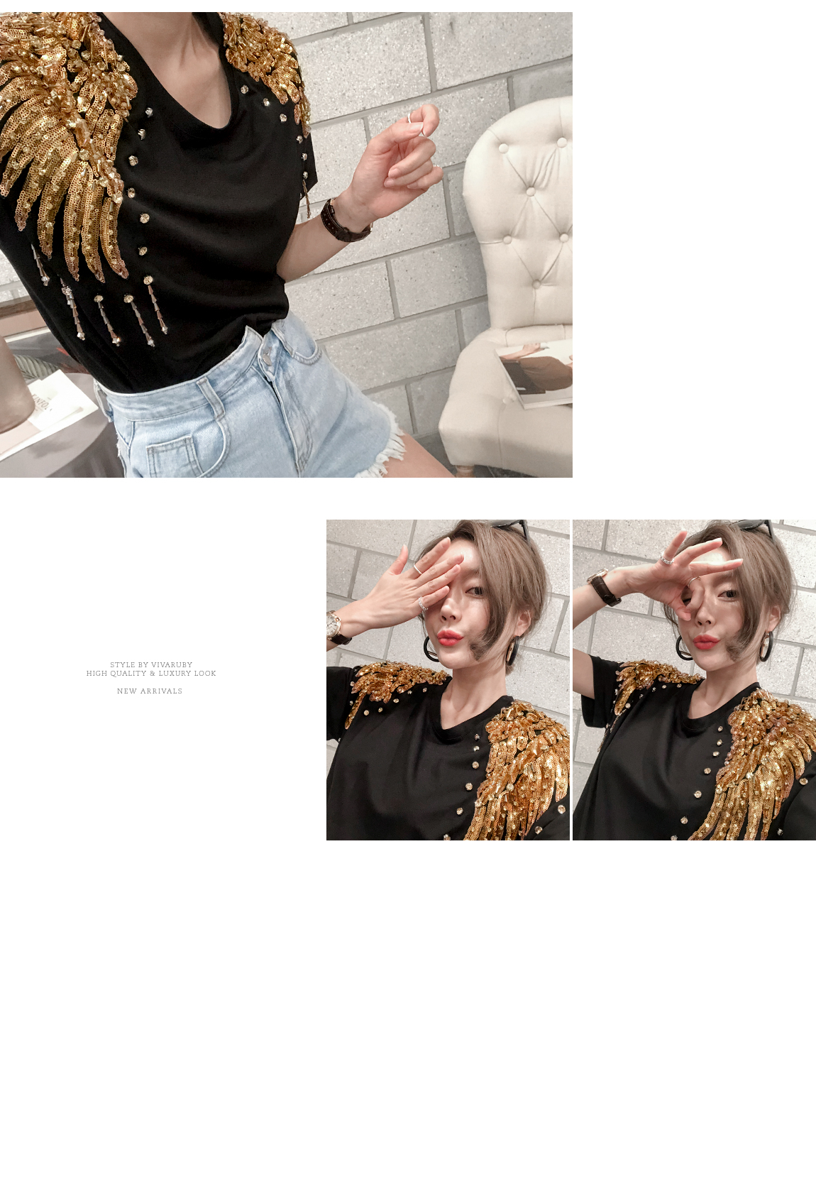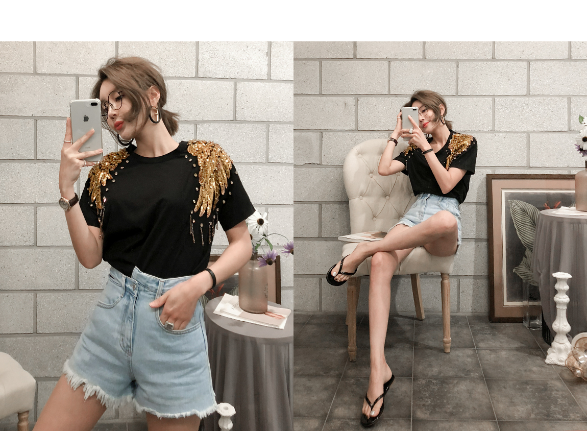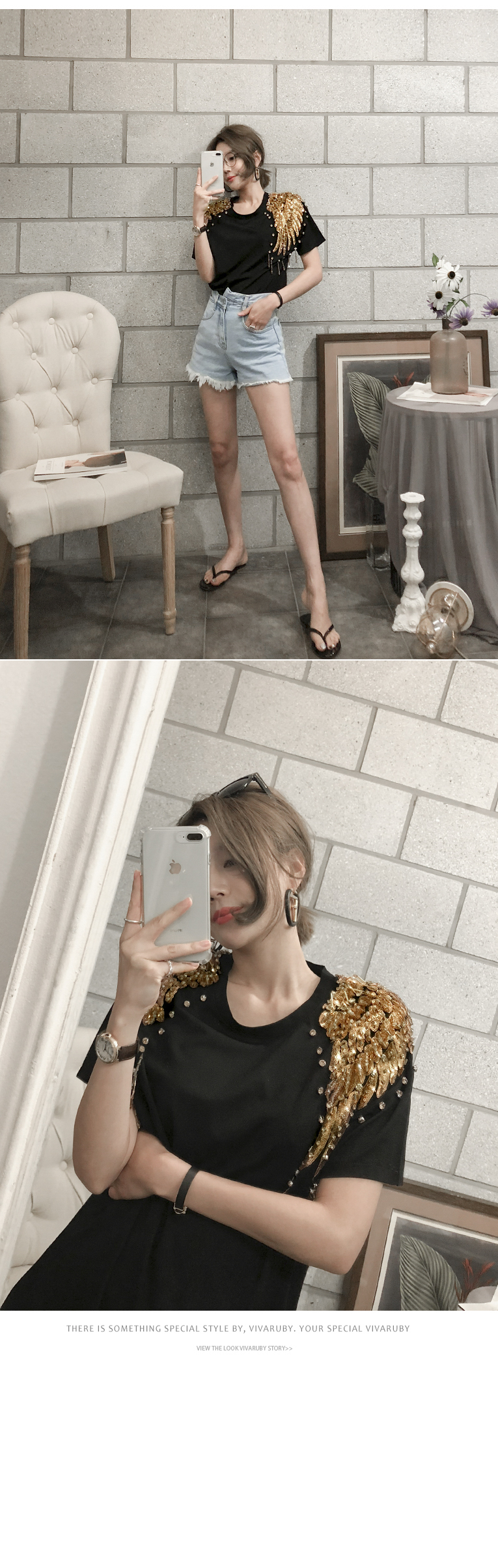 숄더 부분의 스팽글 디테일로 고급스러운 포인트를 주었답니다