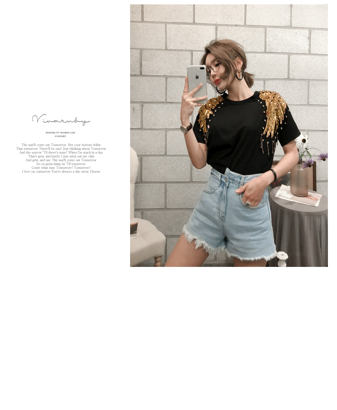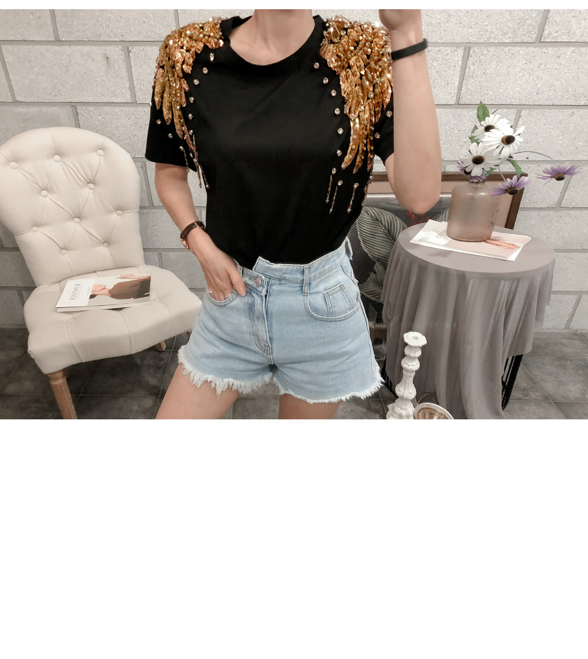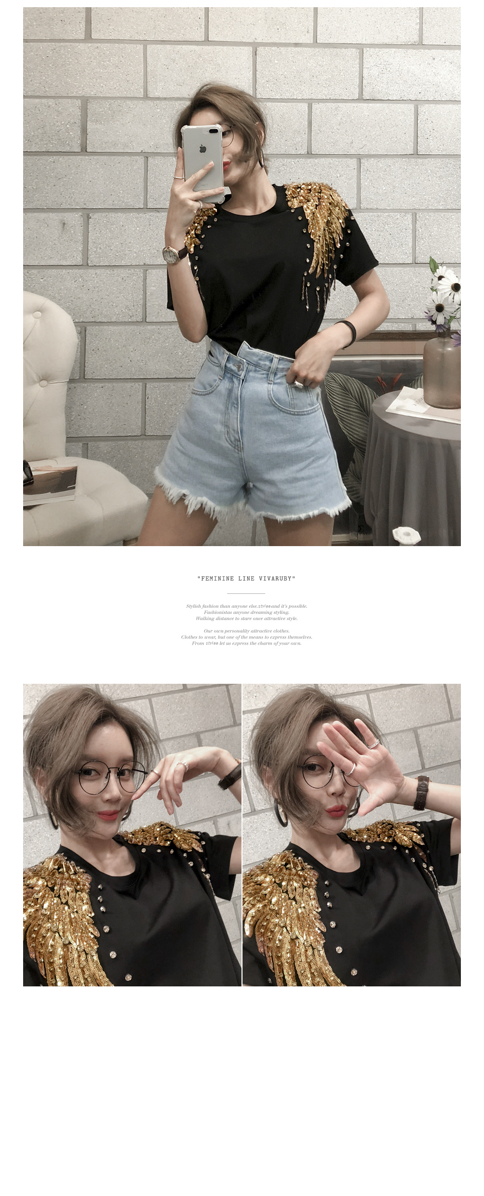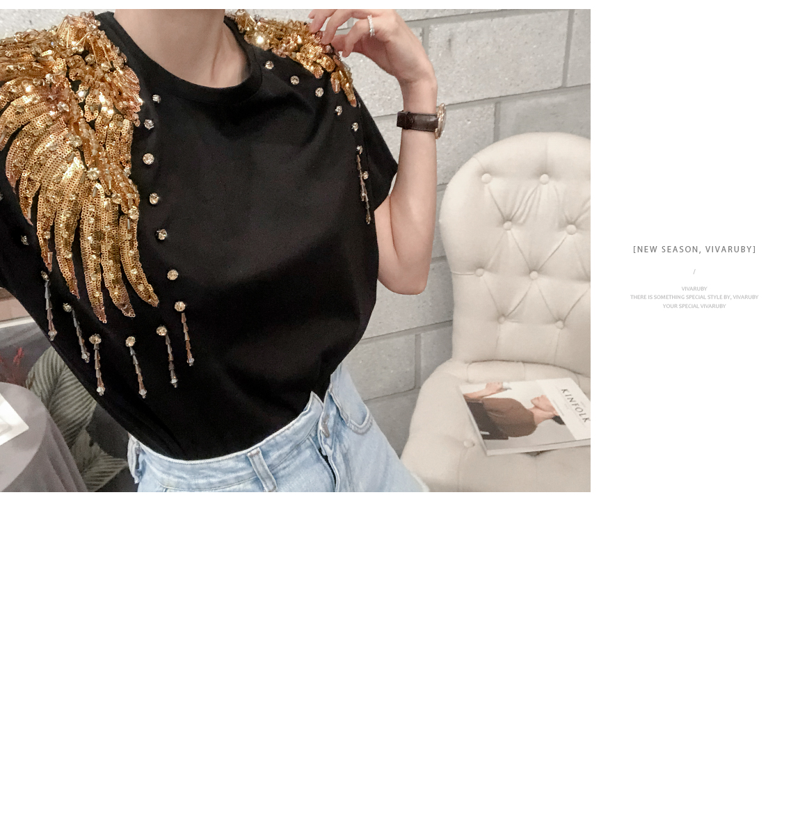 숄더 부분의 스팽글 디테일로 고급스러운 포인트를 주었답니다
