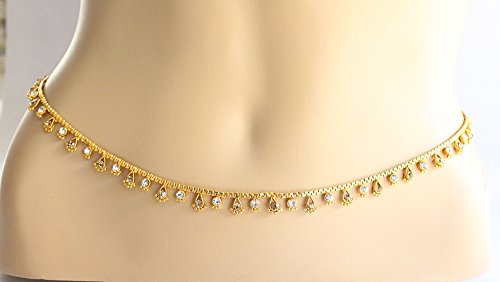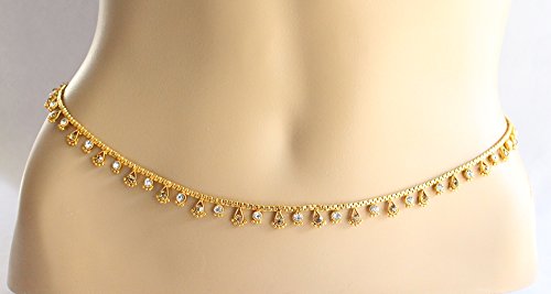 Product Description~~~ This Listing is for ~~~ * Beautifully designed gold belly chain embedded with crystals. * Would look sexy with sari belly dance costumes. * Adjustable from 26 to 42 inches.0