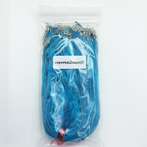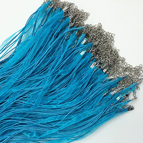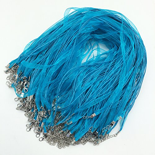 PEPPERLONELY 100PC 17" Organza Ribbon with Waxed Cord Necklaces Lobster Clasp Jewelry Making, Turquoise