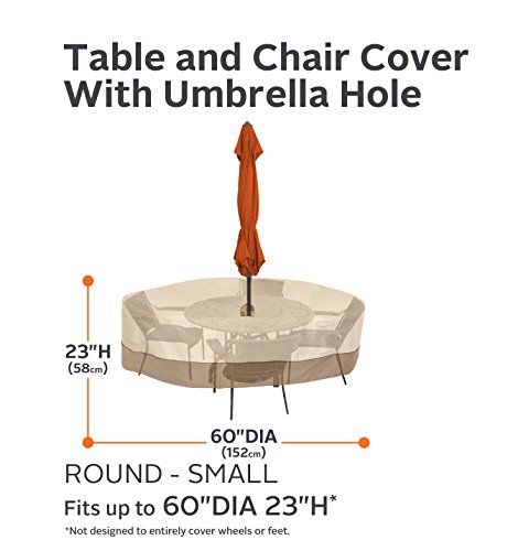 Classic Accessories Veranda Round Patio Table & Chair Set Cover With Umbrella Hole - Durable and Water Resistant Patio Set Cover, Small (55-460-021501-00)