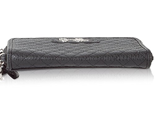 Carry your cash and cards in this classic Jessica Simpson Katie Wristlet Wallet, Exterior Features Quilted Design, Signature logo accent and Zip closure, Interior features; 3 credit card slots, 1 ID slots, bill pocket and zippered coin pocket. This wallet offers hands free design with the wristlet strap and exceptional organization in sleek styling.