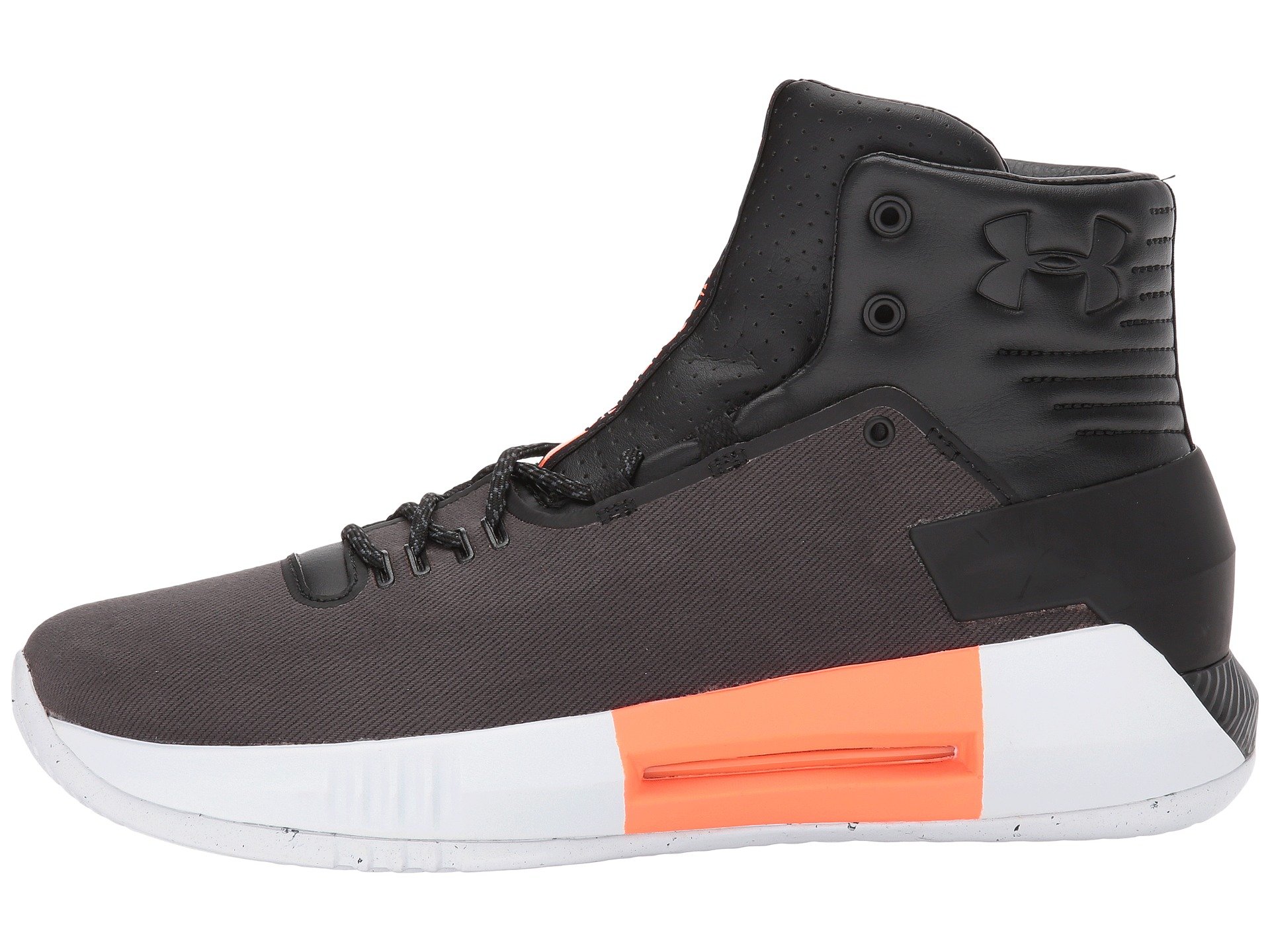 | Product Information SKU: #8894431Elevate your game to legendary baller status with the flexible, cushioned support of the Under Armour? UA Drive 4 Premium shoe!Breathable textile uppers with premium leather tongue and collar.Dynamic upper with regional flex zones to enable the shoe to bend with the foot. Molded ankle collar offers a supportive fit. Adjustable lace-up closure provides a secure fit.Die-cut EVA sockliner midsole offers cushioned support. Exposed Micro G? heel unit provides added cushioning and support. Offers a compression molded EVA midsole for lateral containment.3D containment cradle works to keep the foot over the platform. Rubber outsole with herringbone traction pattern for superior grip. Imported. Product measurements were taken using size 9.5, width D - Medium. Please note that measurements may vary by size.Weight of footwear is based on a single item, not a pair.Measurements: Weight: 1 lb |