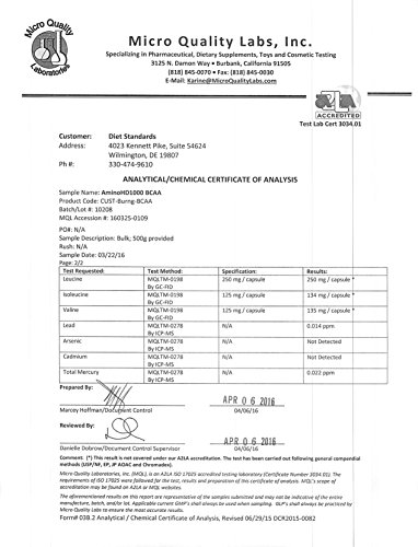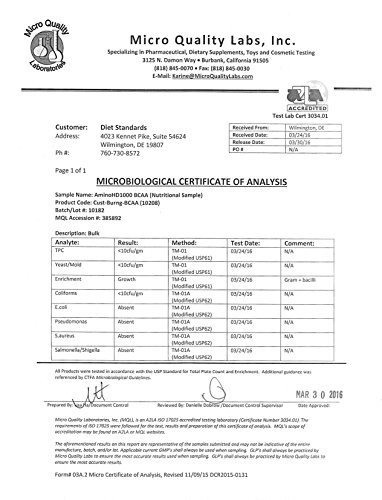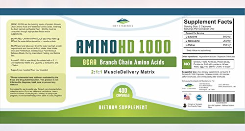 -. Binding : Health and Beauty -. Brand : Diet Standards -. EAN : 0799975166308 -. Feature : 100% LIFETIME GUARANTEE OR YOUR MONEY BACK - Building muscle is enough work. Let us help take a load off your purchase today. Diet Standards offers a 100% money back lifetime guarantee. We go far beyond standard BCAA products to ensure our product exceed quality and purity. But if you are unsatisfied for any reason, we will provide you a prompt refund. We stand by (and use) our own products. / 3RD PARTY LAB TESTED AND TRUSTED - Diet Standards is proud that our high-quality nutritional supplements are made in a GMP/FDA approved facility in the USA. All of our products are tested for purity at a 3rd party lab. This ensures that you are taking the highest quality BCAA muscle-builder product. We use zero additives, excipients, or other unnecessary ingredients many of our competitors use. / BUILD SERIOUSLY LEAN MUSCLE - Our BCAA is scientifically proven using a 2:1:1 Ratio of Leucine (500mg), Isoleucine (250mg), and Valine (250mg) to aid in both building muscle and recovery. Take just 2 capsules a day to see a possible reduction in fat levels and a metabolism boost thanks to new muscle growth. Perfect for dieting, weight training, pre and post-workout, and overall muscle support. / HELPS BOOST YOUR PERFORMANCE & ENDURANCE - You work hard to build muscle, right? Why not let our high-quality BCAA supplement help you get the results you're looking for? You already know that BCAA amino acids are natural and essential nutrients the body must have to function at its peak. Join the thousands of satisfied Diet Standards customers that rely on us for their BCAA supplementation. / 3 MONTHS+ SUPPLY IN ONE BOTTLE - We'll ship you 400 high-quality BCAA capsules when you order today. Our triple power-packed BCAA is one of the only supplements on the market that discloses 100% of our 3rd party lab results on our website. Thousands of BCAA bottles sold. Over 1,000 positive reviews on Amazon alone. Order your bottle today. Your purchase is protected by our lifetime guarantee. -. IsAdultProduct : 0 -. Label : Diet Standards -. Manufacturer : Diet Standards -. ProductGroup : Health and Beauty -. ProductTypeName : HEALTH_PERSONAL_CARE -. Publisher : Diet Standards -. Studio : Diet Standards -. Title : Diet Standards BCAA Capsules, 1000mg, 400 Count -. UPC : 799975166308