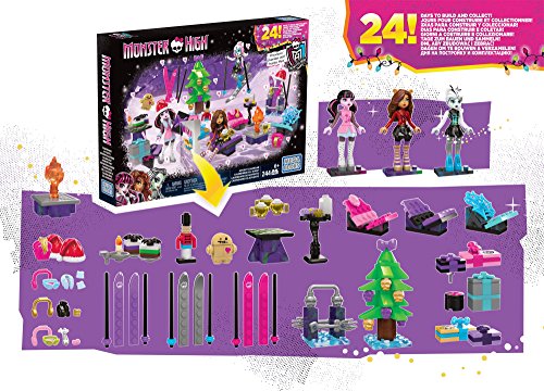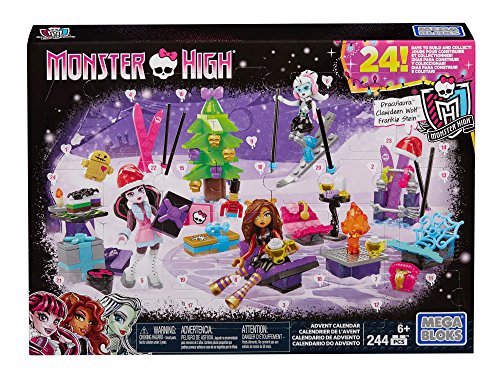 -. Binding : Toy -. Brand : Mega Bloks -. EAN : 0887961318937 -. Feature : Holiday advent calendar with 24 unique, monster-fied surP.R.Ises for building a new toy each day / Three buildable mini fashion figures including Frankie Stein, Clawdeen Wolf, and Draculaura, with style accessories / Combine with other Mega Bloks Monster High playsets / Build your own freaky fabulous world! / A great gift for any Monster High fan! -. Label : Mattel -. Manufacturer : Mattel -. Model : DPK33 -. MPN : DPK33 -. PackageQuantity : 1 -. PartNumber : DPK33 -. ProductGroup : Toy -. ProductTypeName : TOYS_AND_GAMES -. Publisher : Mattel -. ReleaseDate : 2016-04-13 -. Studio : Mattel -. Title : Mega Bloks Monster High Advent Calendar -. UPC : 887961318937 -. Warranty : 1 year warranty against manufacturer defects