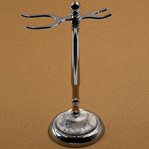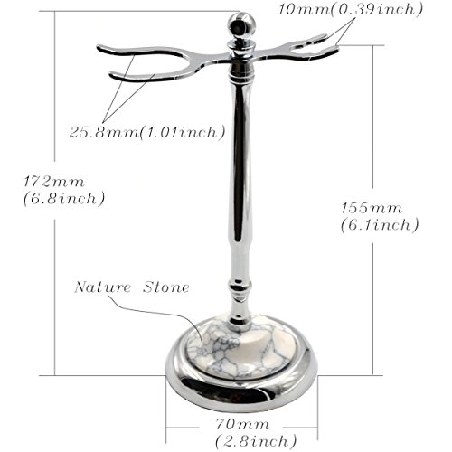 Deluxe Removable Shaving Stand Stainless Razor Brush Holder Weighted Base, Classic Authentic Natural Stone Base Face