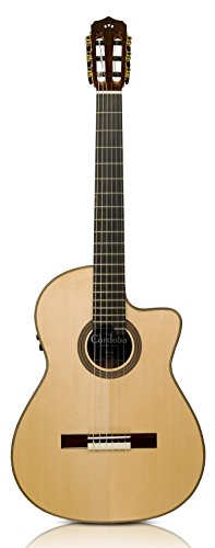 ReleaseDate : 2009-02-01 Studio : Tornavoz Music Company Publisher : Tornavoz Music Company Binding : Electronics Product Description The 14 Maple features a solid European spruce top, flamed Maple back and sides, sleek high gloss PU finish, and a Fishman Presys Blend pickup with an onboard tuner. A nylon string guitar for the steel string crossover guitarist, the 14 Maple has a 48mm nut width and a comfortably curved radiused Ebony fingerboard. This lightweight nylon string guitar is built with the traditional Spanish heel and has an adjustable truss rod built into the neck. Comes with a Cordoba gig bag. 0