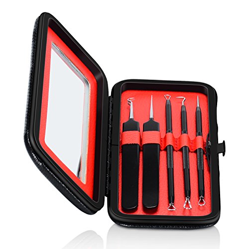 GoBetter professional surgical stainless steel blackhead remover tools, comedone pomple removal kit, acne extractor, blemish and splinter tweezers, leather...