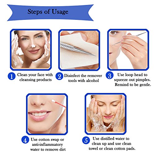 - Safety of usage: Made of 100% dermatologist grade surgical steel will not cause any sensitivity issues, prevent corrosion and minimize risk of infections. Our blackhead extractor can work on all types of skin. No more hyper pigmentation, scar or any marks left behind.